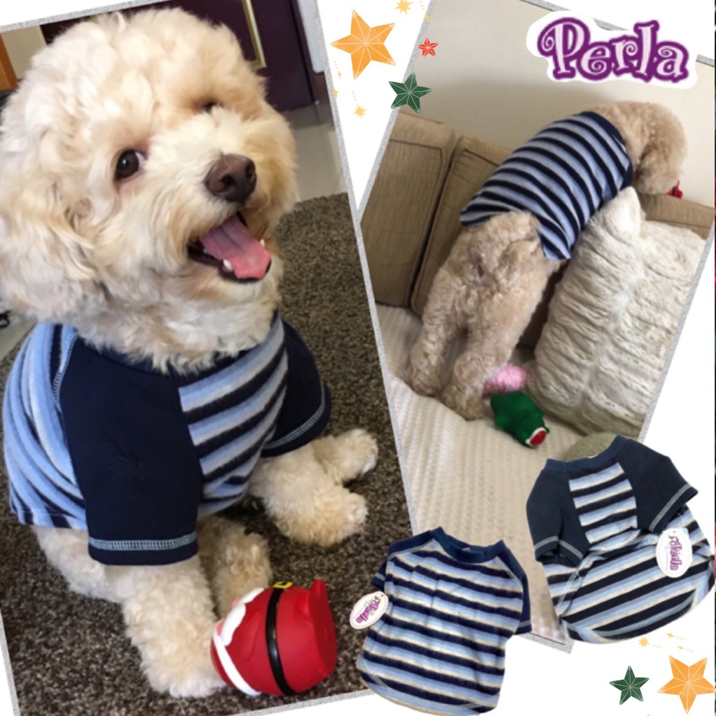 Perlapets 寵物服飾 淘氣男孩風T 藍條紋磨毛款 台灣製 狗衣 貓衣