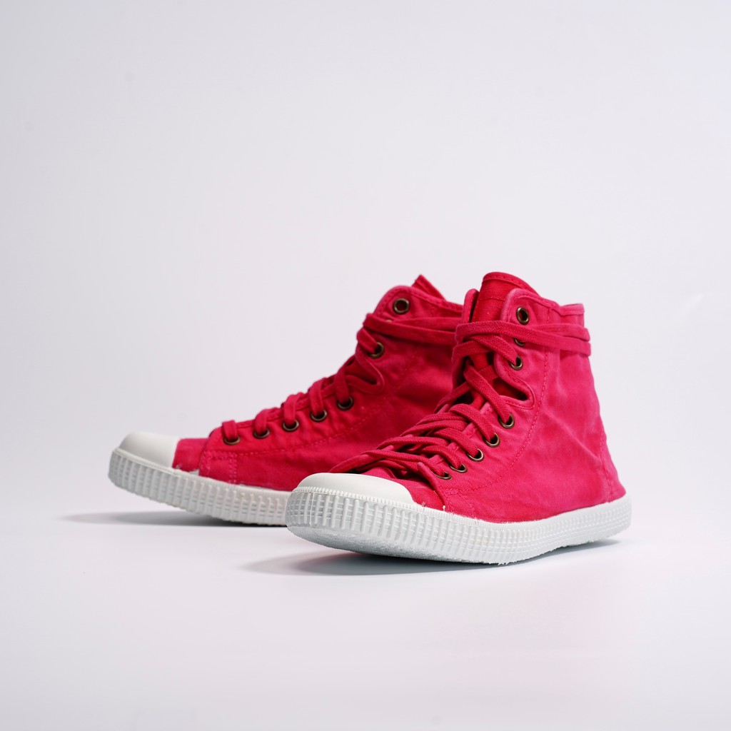 CIENTA 西班牙帆布鞋 61777 66 桃紅色 洗舊布料 大人 高筒