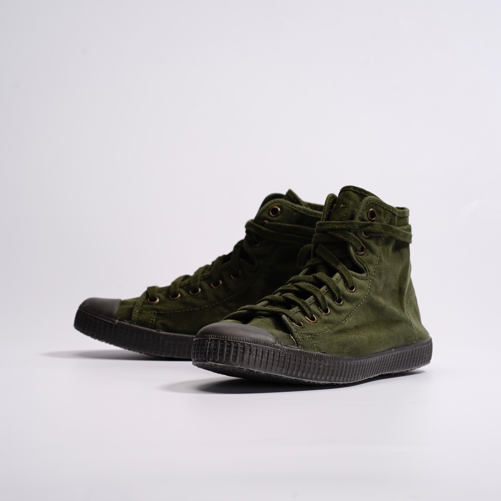 CIENTA 西班牙帆布鞋 U61777 22 墨綠色 黑底 洗舊布料 大人 高筒
