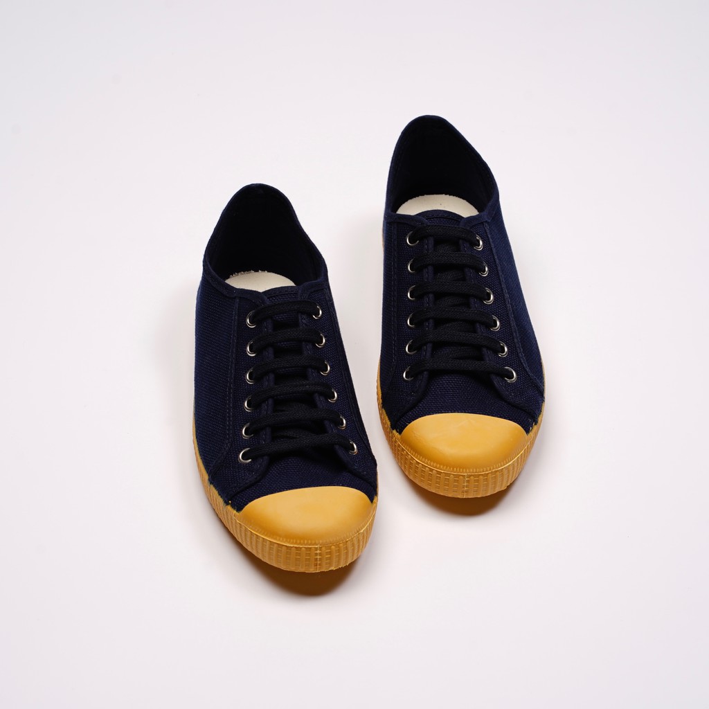 CIENTA 西班牙帆布鞋 J74020 77深藍色 黃底 020布料 大人 繫帶款