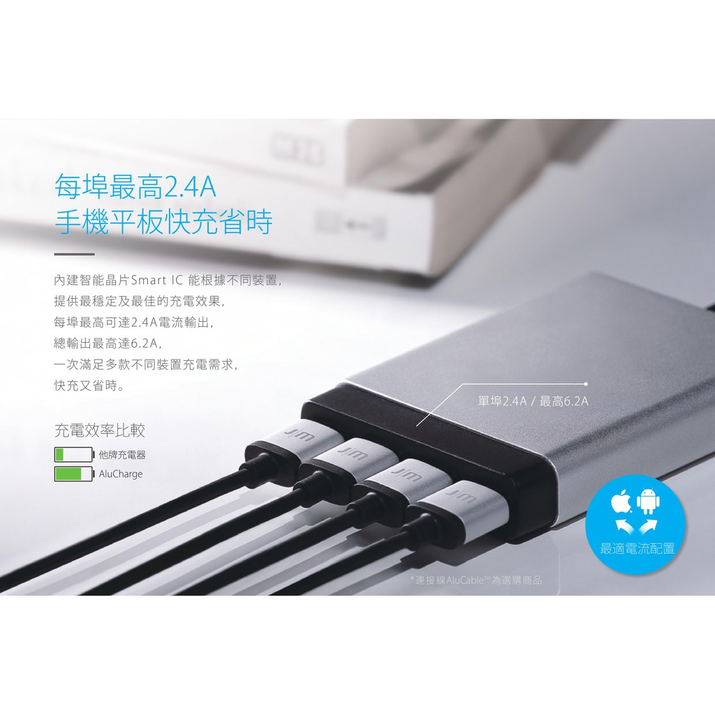 Just Mobile AluCharge 鋁質USB四埠智慧充電器