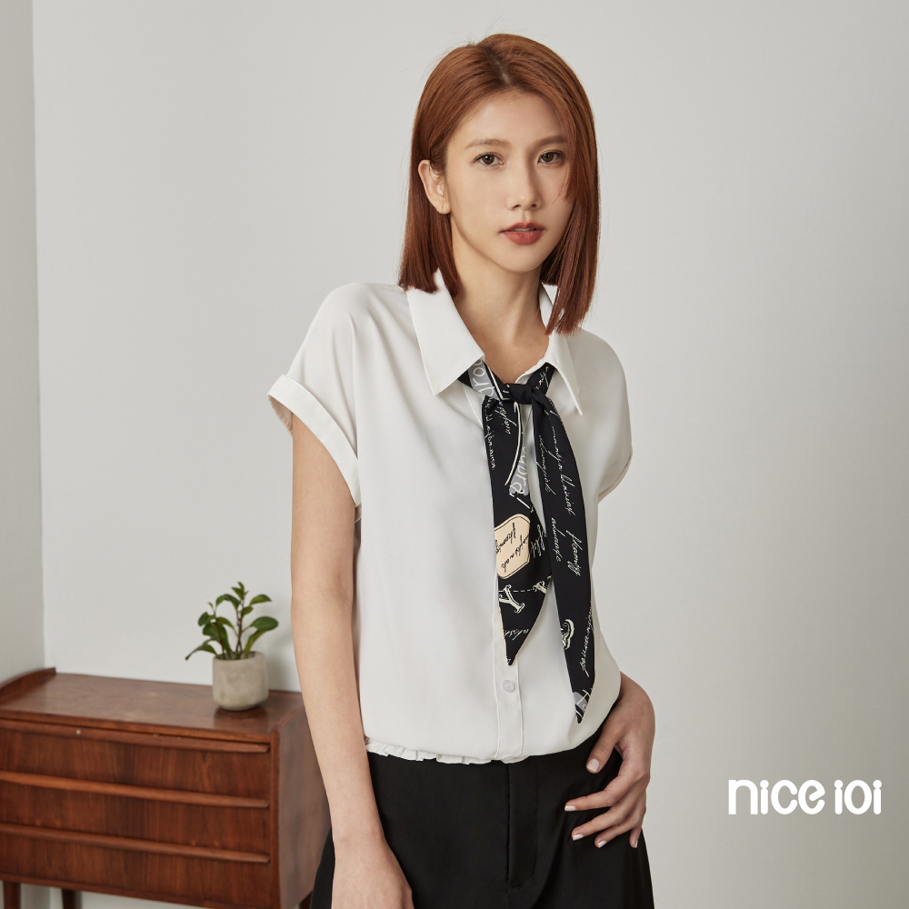 niceioi【特惠】造型可拆式領巾雪紡上衣 領巾上衣 雪紡上衣 衣服 t恤 V領上衣 女裝