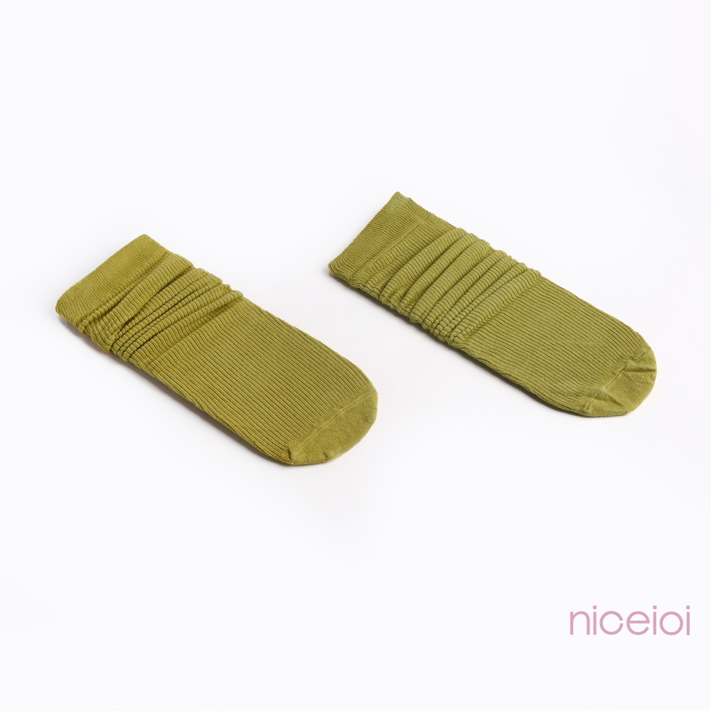 niceioi 素面羅紋編織中筒襪 (黑/綠/卡其) 女裝
