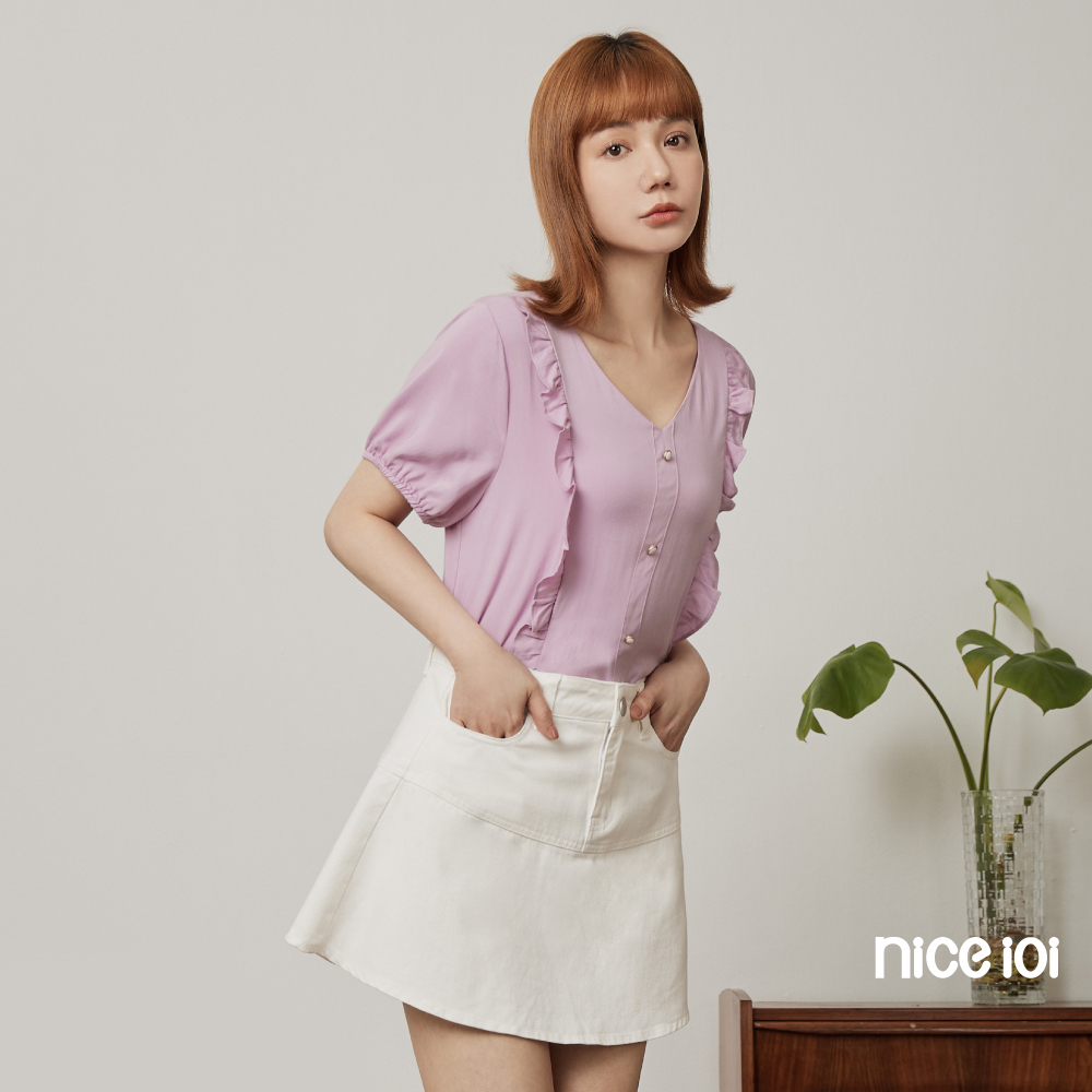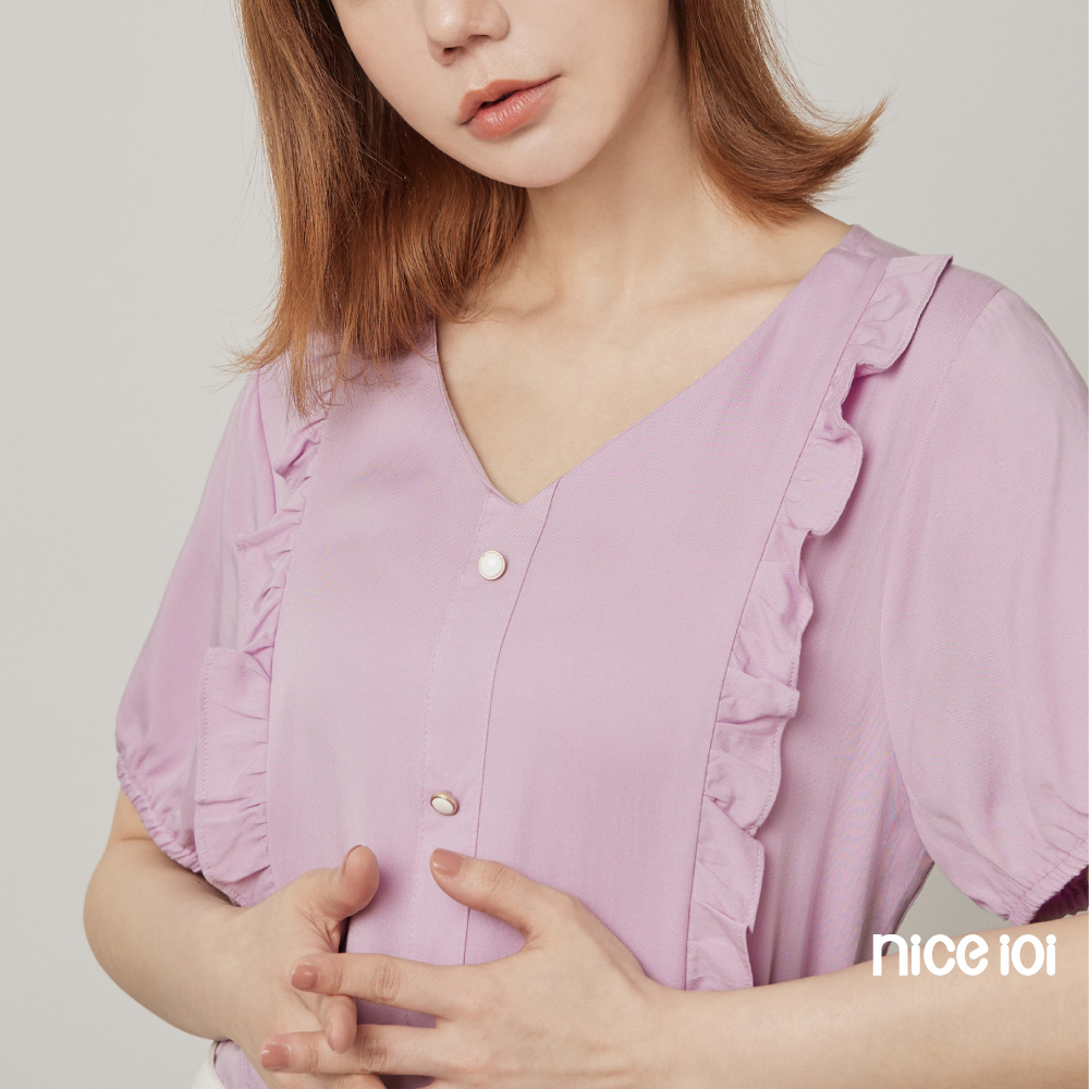 niceioi【特惠】氣質荷葉邊排釦上衣 女裝