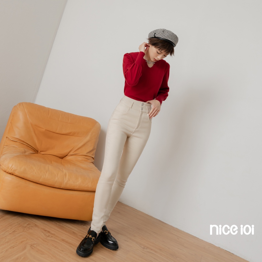 niceioi【特惠】領口鍊條裝飾針織上衣 (共2色) 秋冬新款女生上衣 造型領針織上衣 針織衫 女裝