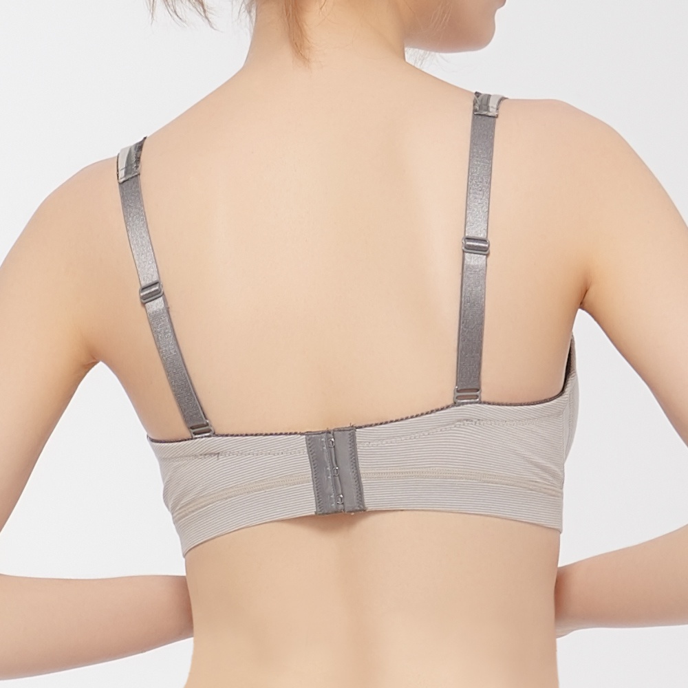 【Gennies 奇妮】莫代爾交叉款休閒哺乳內衣-條紋灰(GA75)孕婦內衣 孕婦 內衣 哺乳衣 無鋼圈孕婦內衣 餵哺