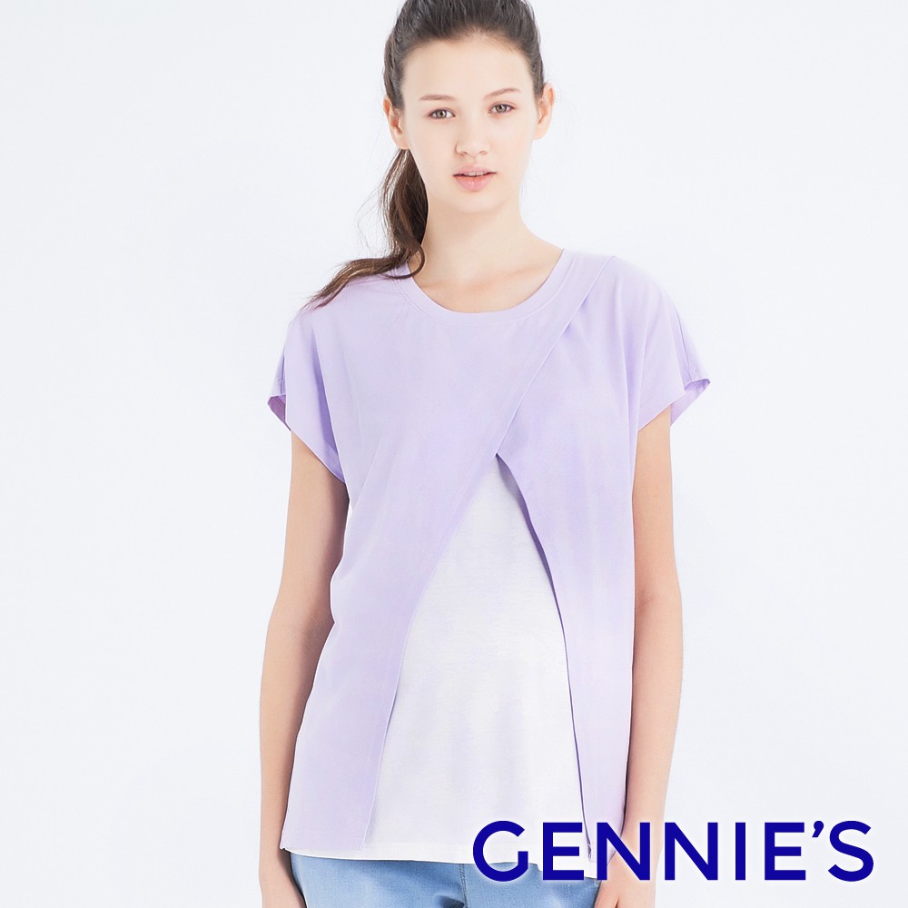 【Gennies 奇妮】交叉拼接哺乳孕婦上衣-紫(T3H13)