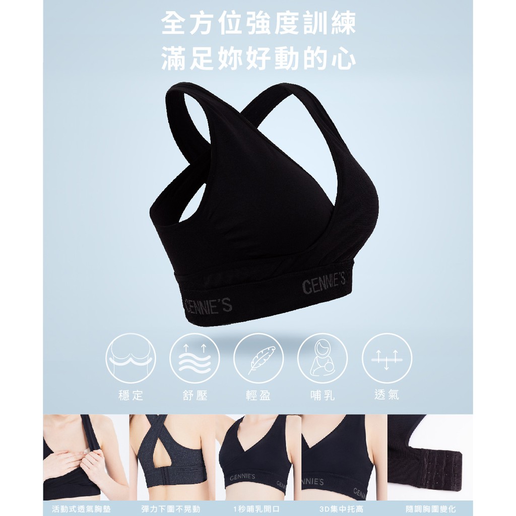 【Gennies 奇妮】AIR輕羽美型運動哺乳內衣-黑(GA77)