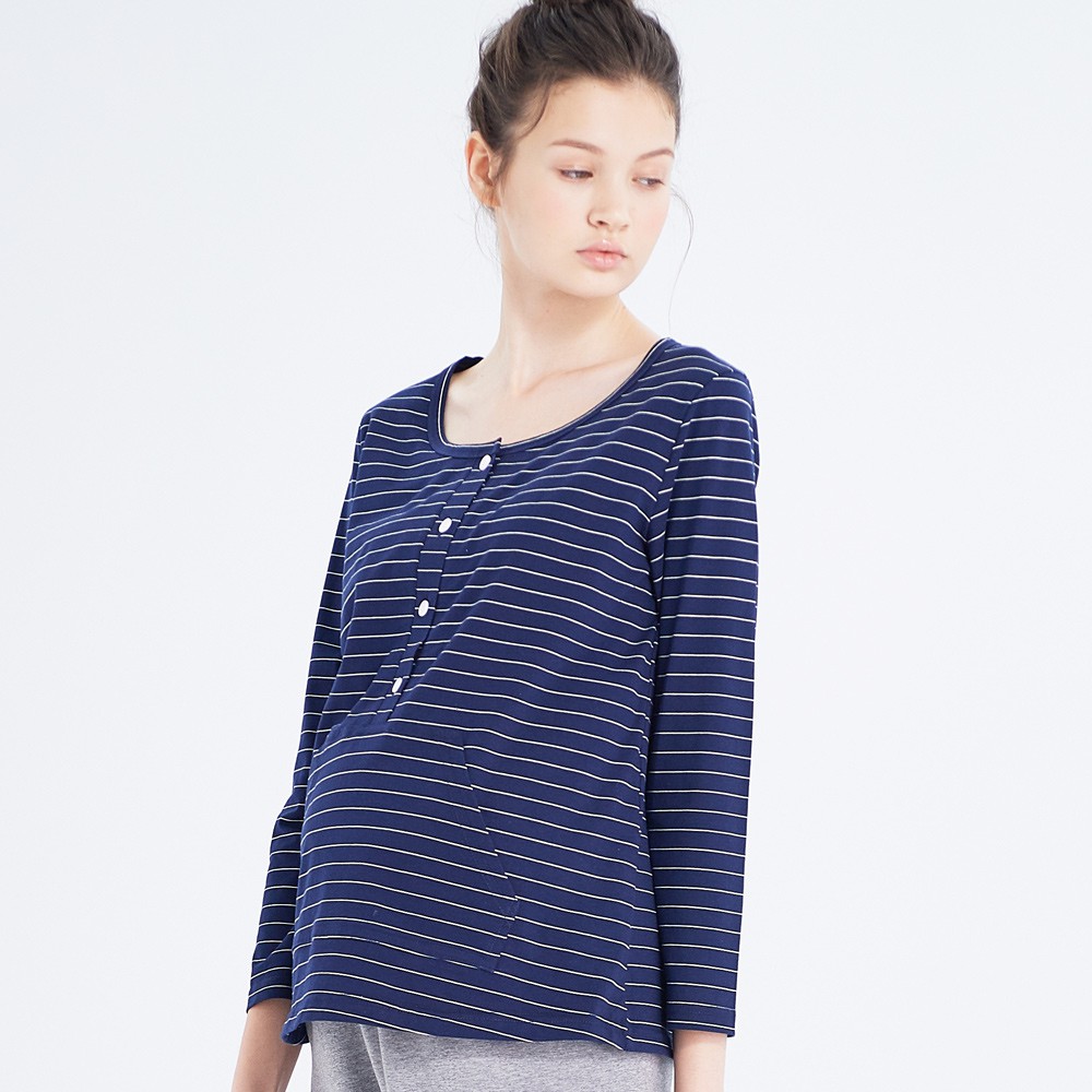 【Gennies 奇妮】條紋休閒孕婦哺乳上衣-藍白條(TPA36)