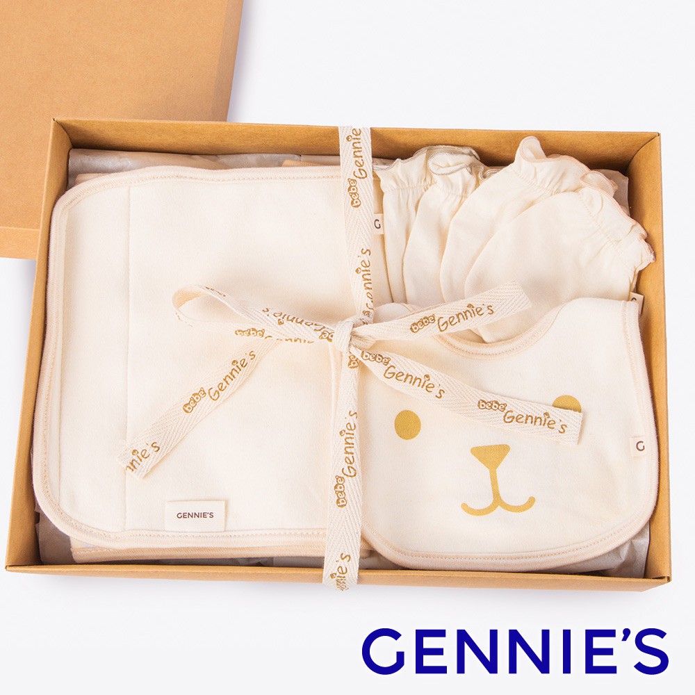 【Gennies 奇妮】小兔甜蜜下午茶柔暖禮盒4件組(肚圍+口水兜+手套)