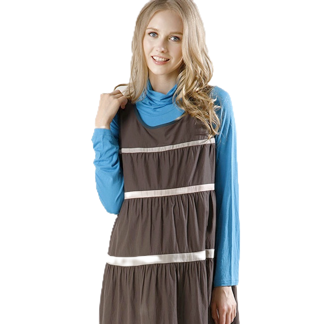【Gennies 奇妮】高領反摺素色棉T上衣-綠/青藍(G3752)