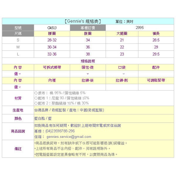 【Gennies 奇妮】率性時尚款刷色造型孕婦牛仔七分褲-藍白點(G4513)