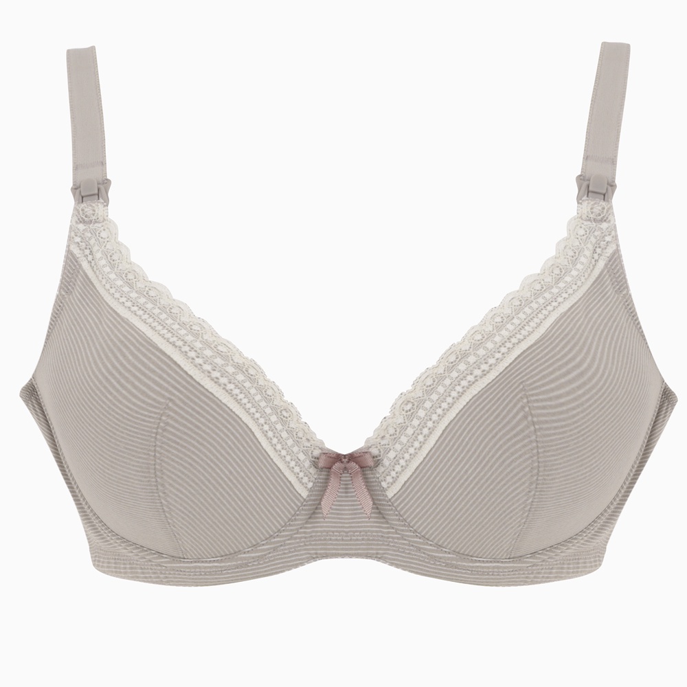 【Gennies 奇妮】啡藏珍品 咖啡紗深V哺乳內衣-條紋灰(GA37)