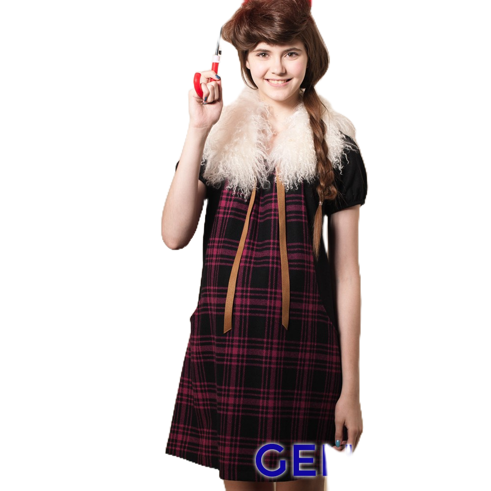 【Gennies 奇妮】格紋拼接羊毛短袖洋裝-藍/白(G1407)