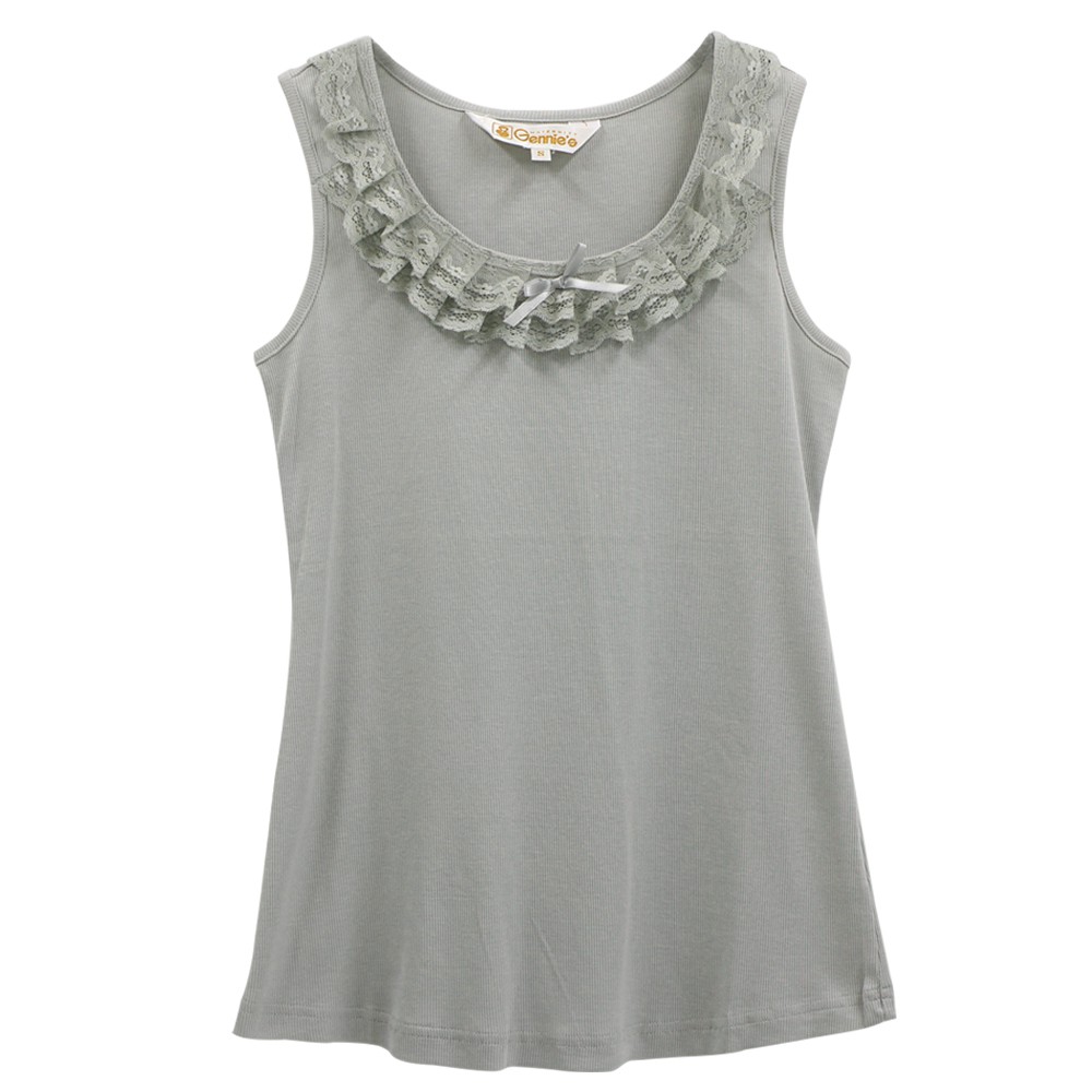 【Gennies 奇妮】圓領素雅直紋無袖上衣-粉/灰(G3V06)