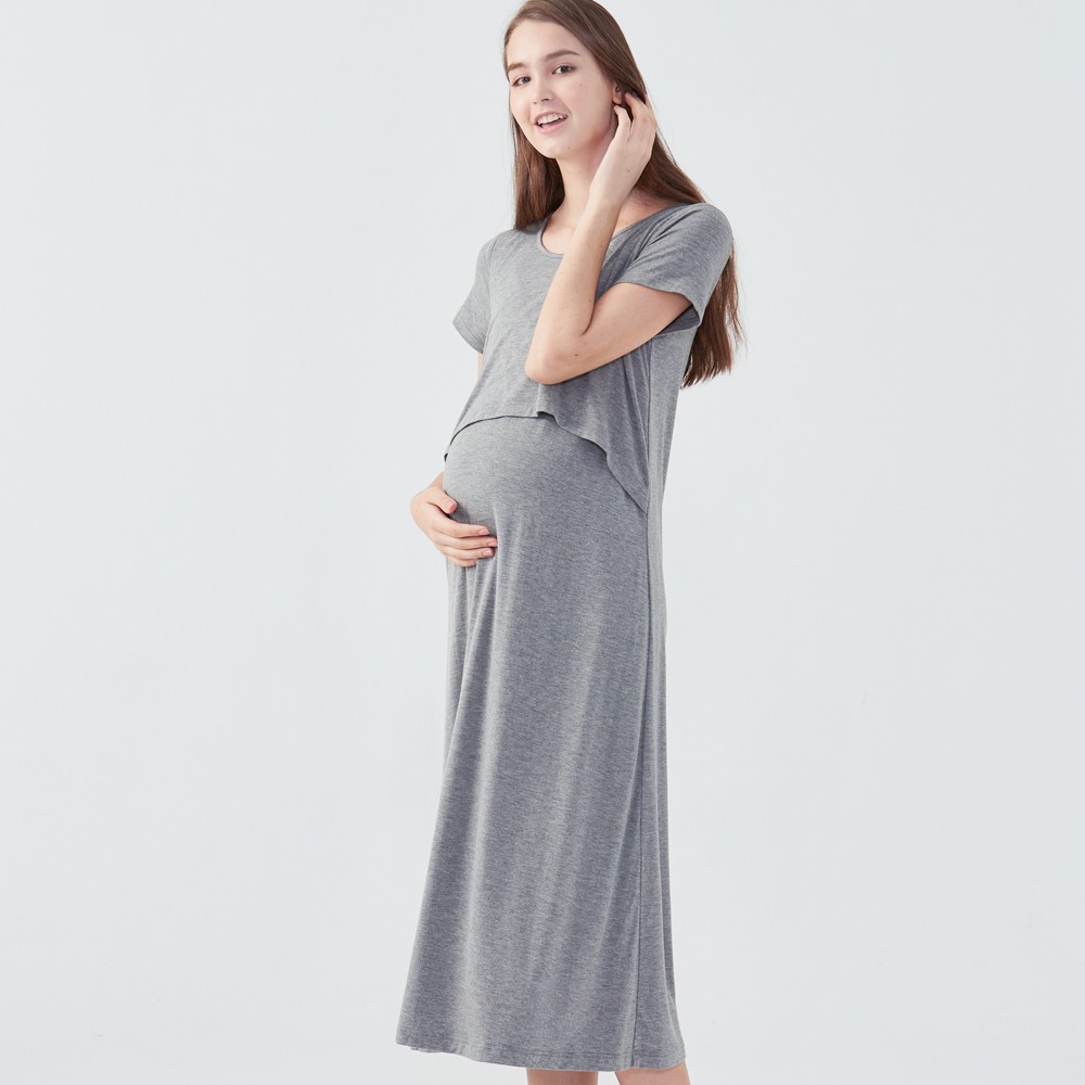 【Gennies 奇妮】親膚假兩件式短袖長洋(C1D19)