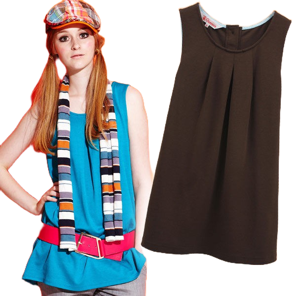 【Gennies 奇妮】素面褶飾無袖上衣-藍綠/咖(G3Y02)