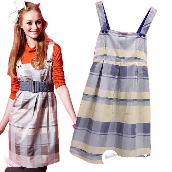【Gennies 奇妮】輕時尚格紋吊帶洋裝-灰藍/淺卡(G2Y02)