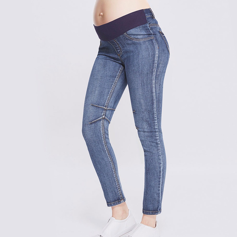 【Gennies 奇妮】立體縫線中腰發熱中空紗牛仔褲-藍(T4E02)彈力牛仔褲 加絨加厚牛仔褲 秋冬保暖牛仔褲