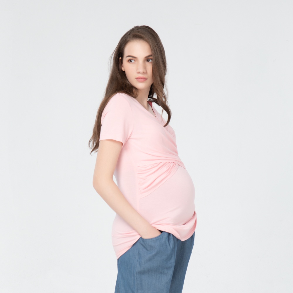 【Gennies 奇妮】交叉型顯瘦哺乳上衣-粉(T3J10)