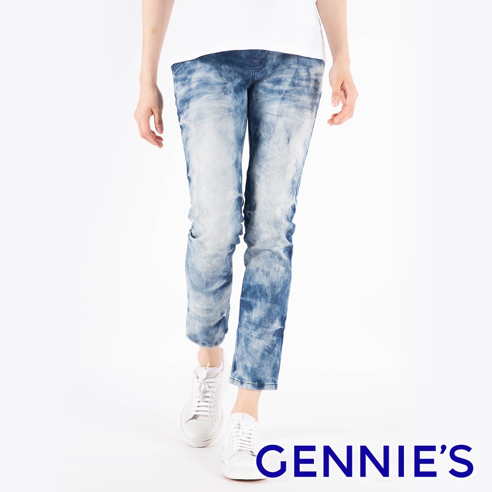 【Gennies 奇妮】率性刷白抓破牛仔褲-藍(T4F68)