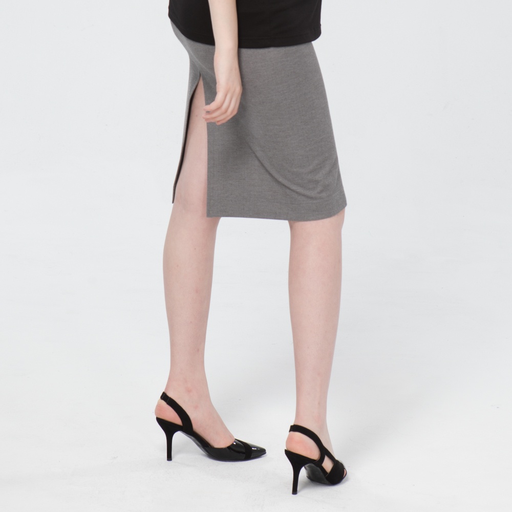 【Gennies 奇妮】修身開衩孕婦窄裙-灰(T4J02)