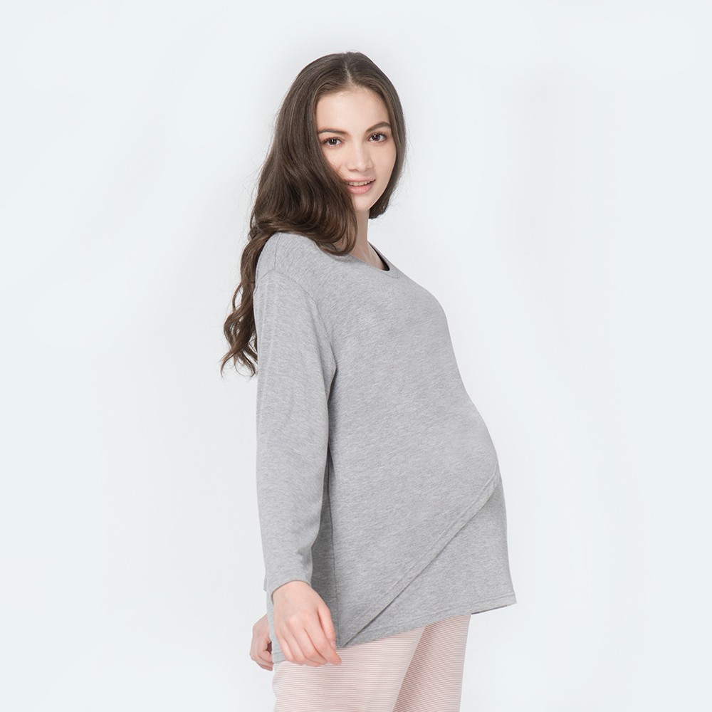 【Gennies 奇妮】不對稱上掀哺乳上衣-灰(TPA49)