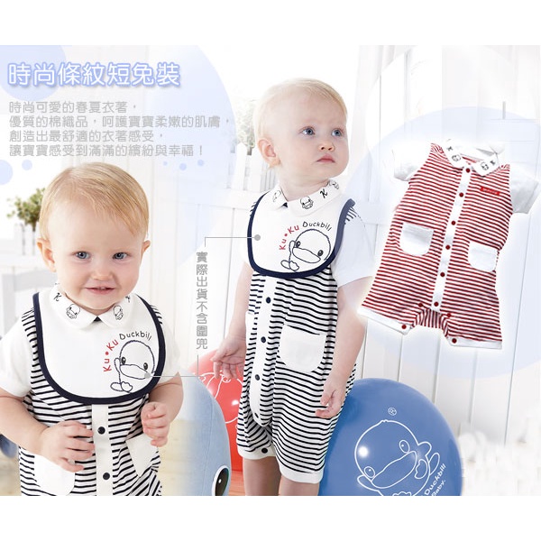 【KU.KU酷咕鴨】時尚條紋短兔裝 藍/紅(8422)