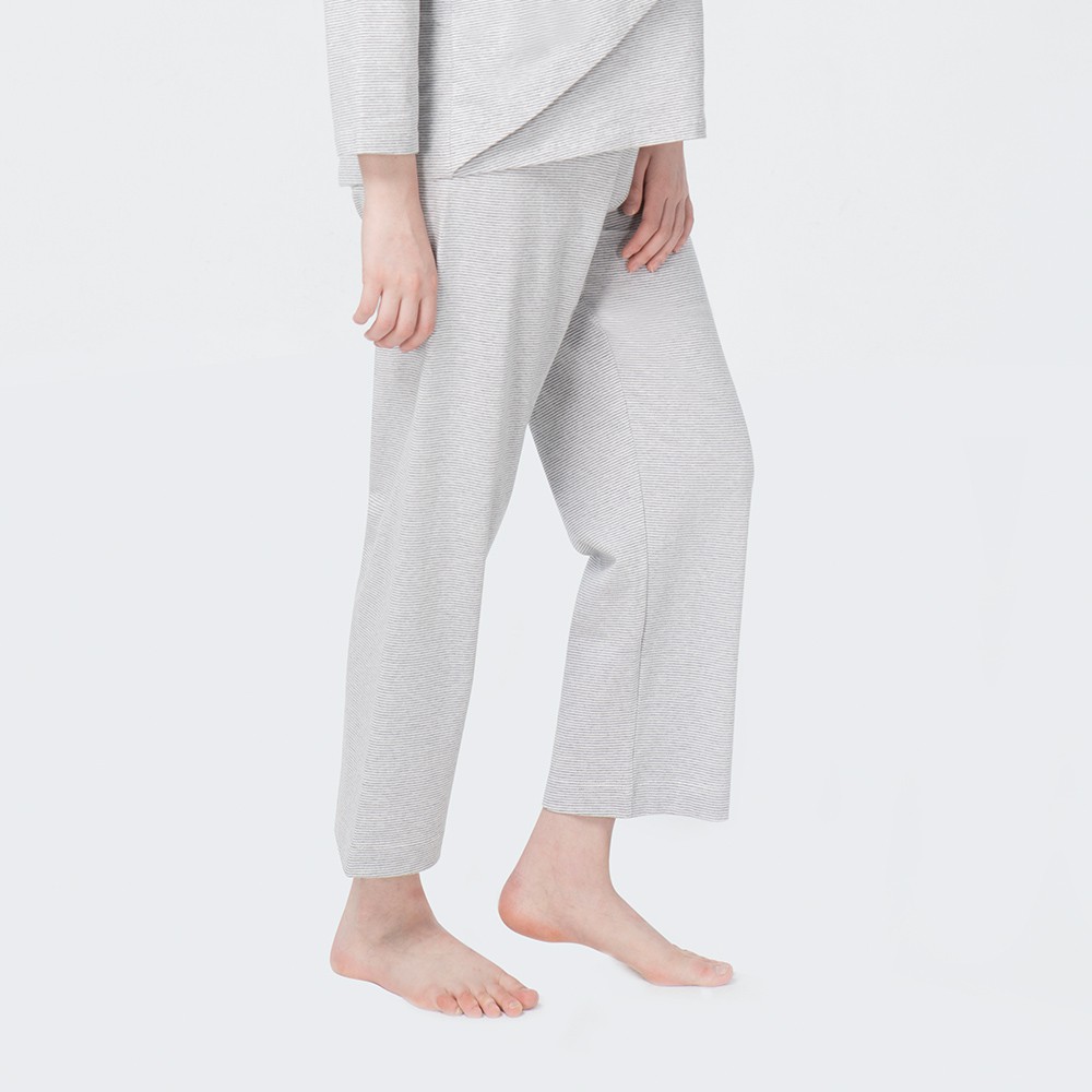 【Gennies 奇妮】親膚直筒休閒孕婦褲-條紋灰(TPA48)