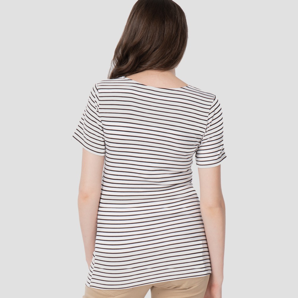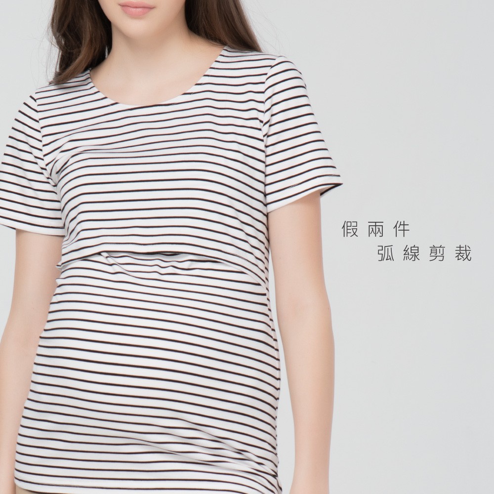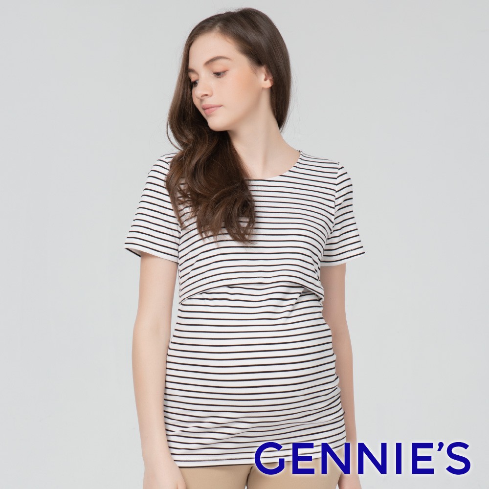 【Gennies 奇妮】上掀式彈力哺乳上衣-黑白條紋(T3J13)