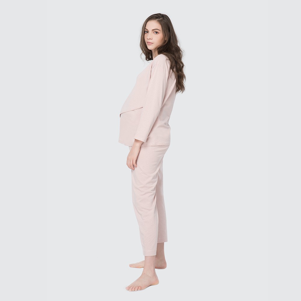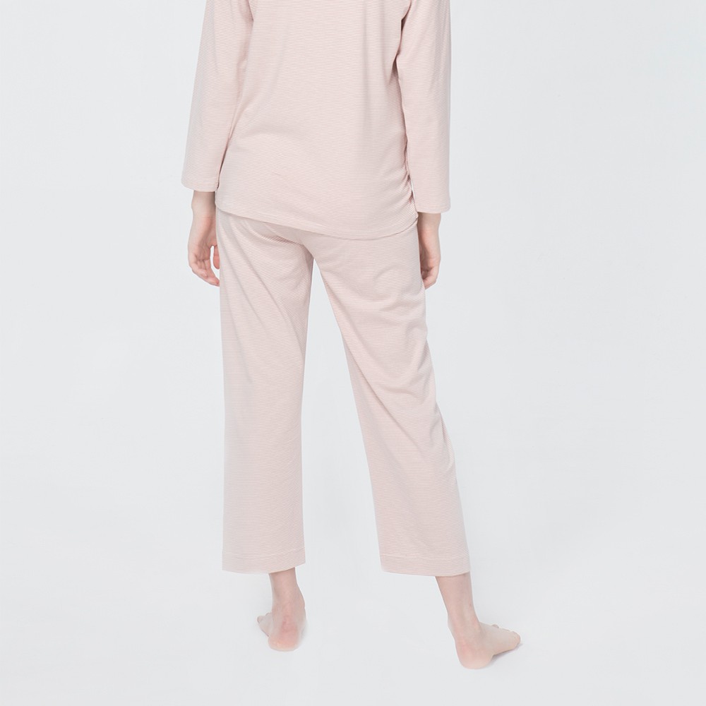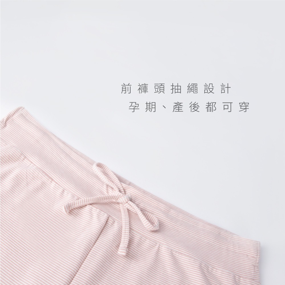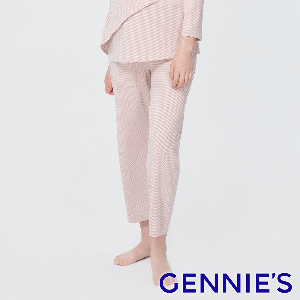 【Gennies 奇妮】親膚直筒休閒孕婦褲-條紋粉(TPA46)