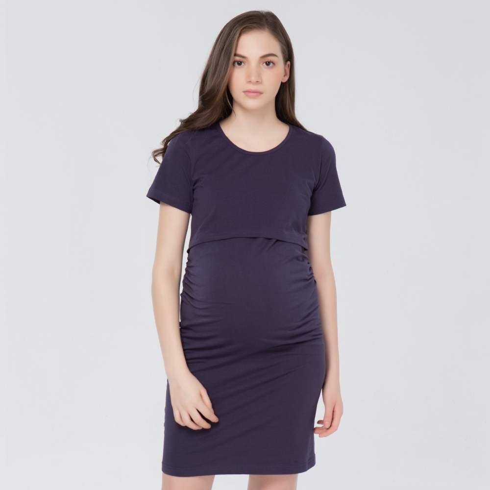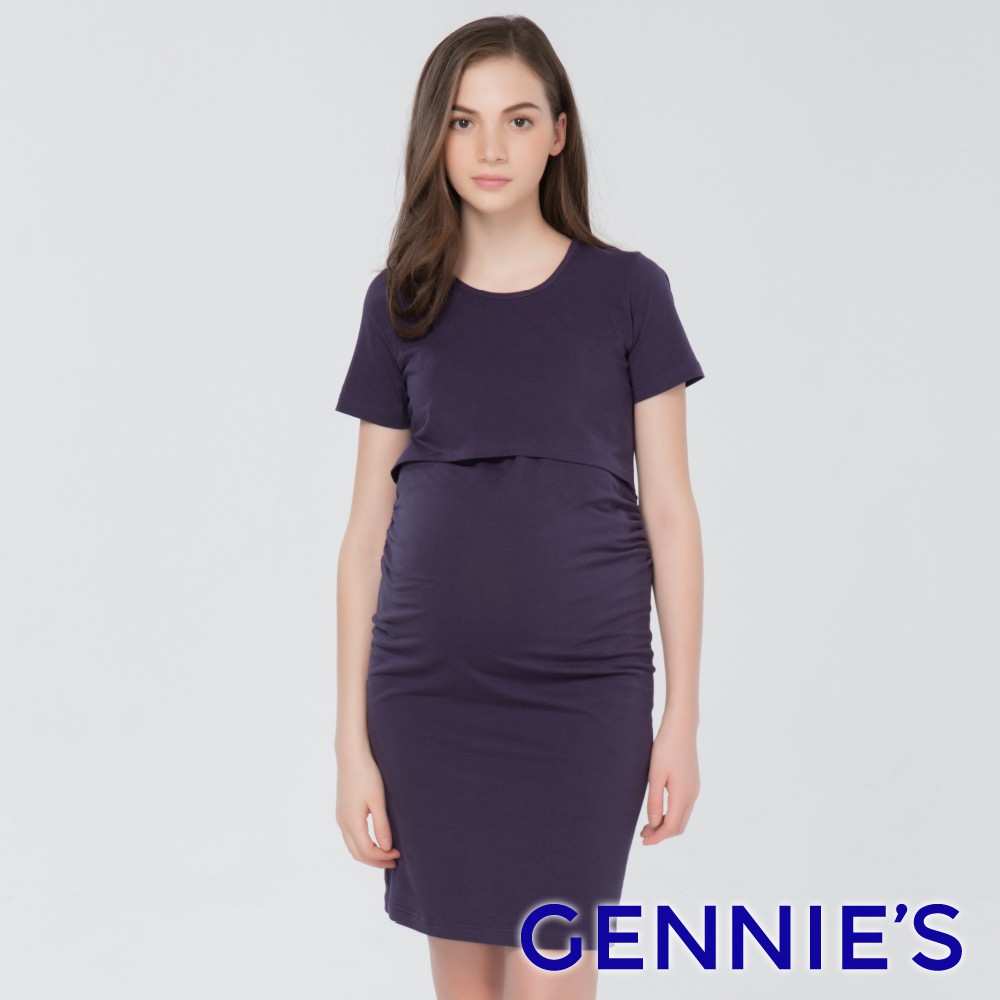【Gennies 奇妮】一件式修身哺乳洋裝-紫(T1J16)