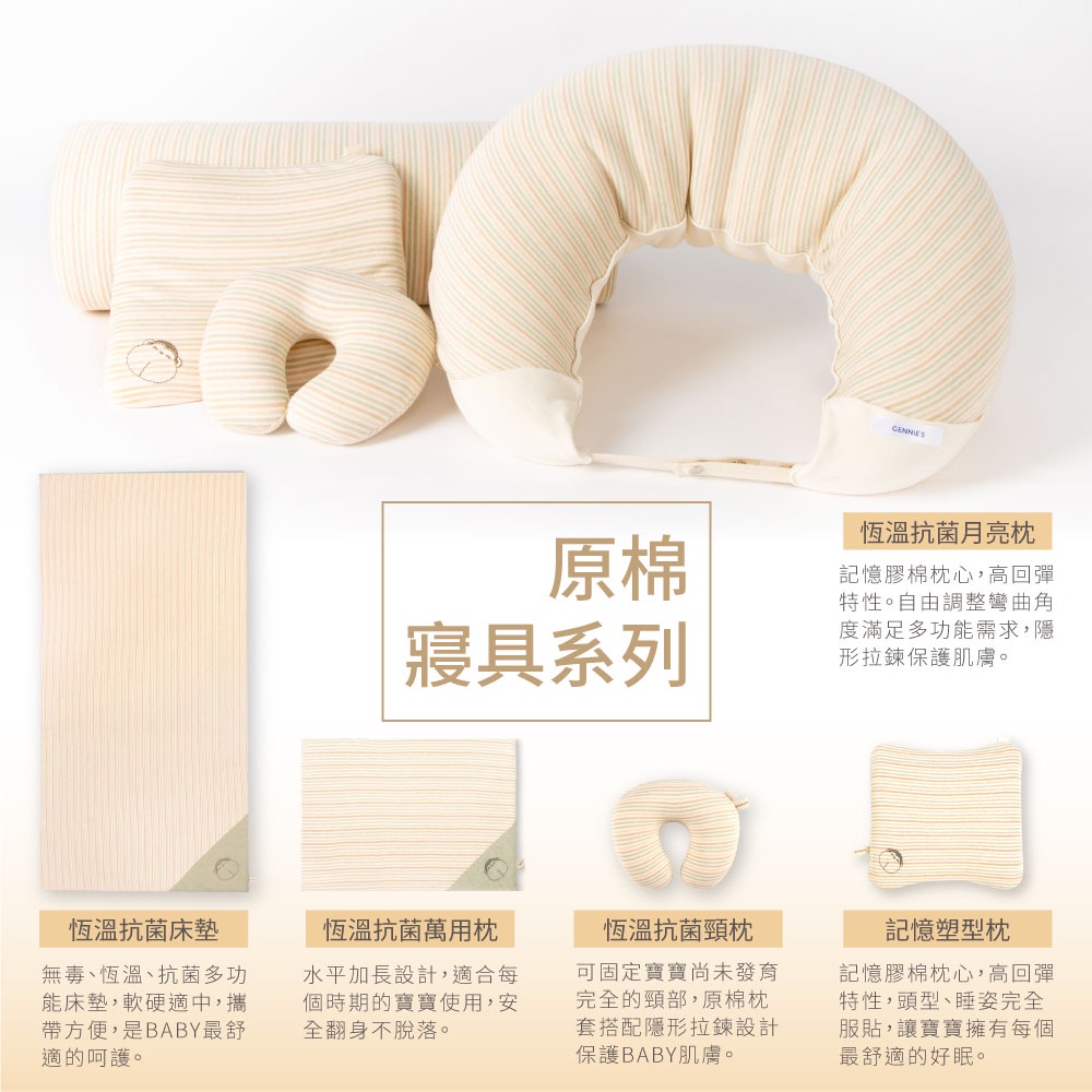【Gennies 奇妮】舒眠超值寢具二件組-原棉(月亮枕+平枕)