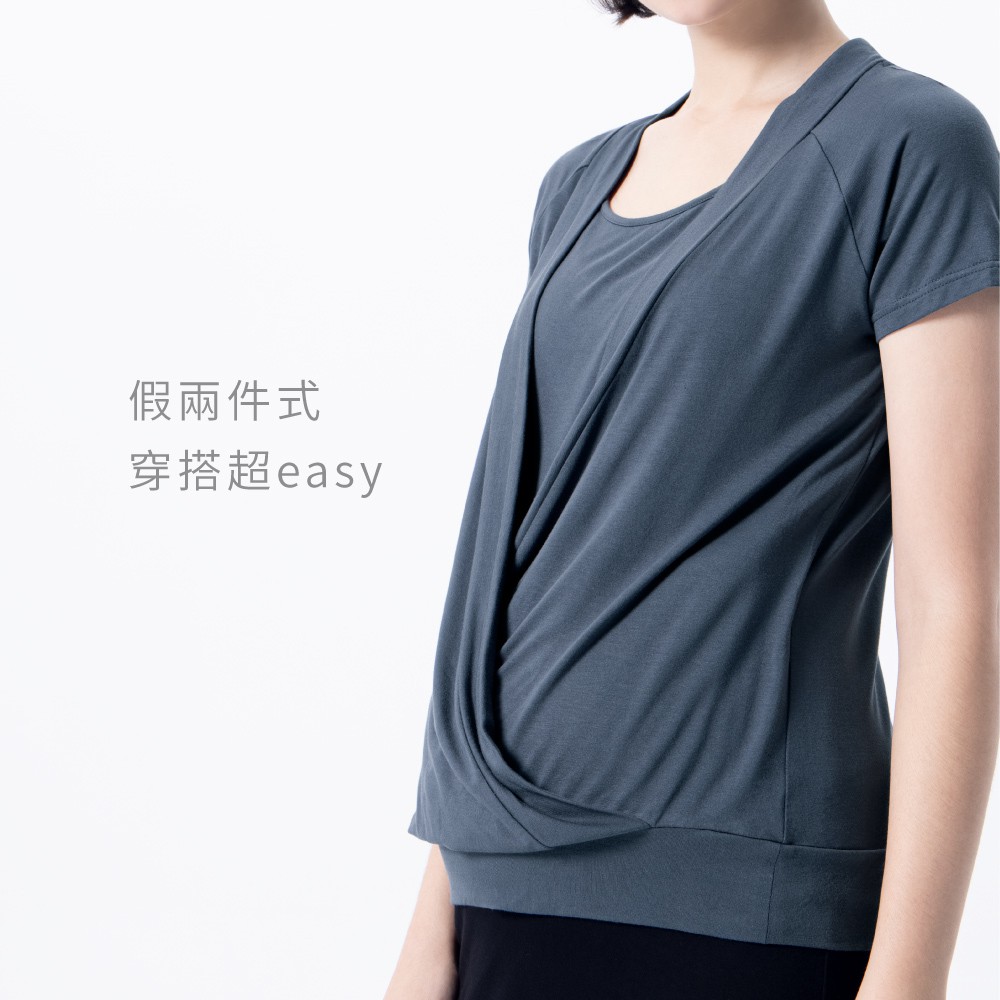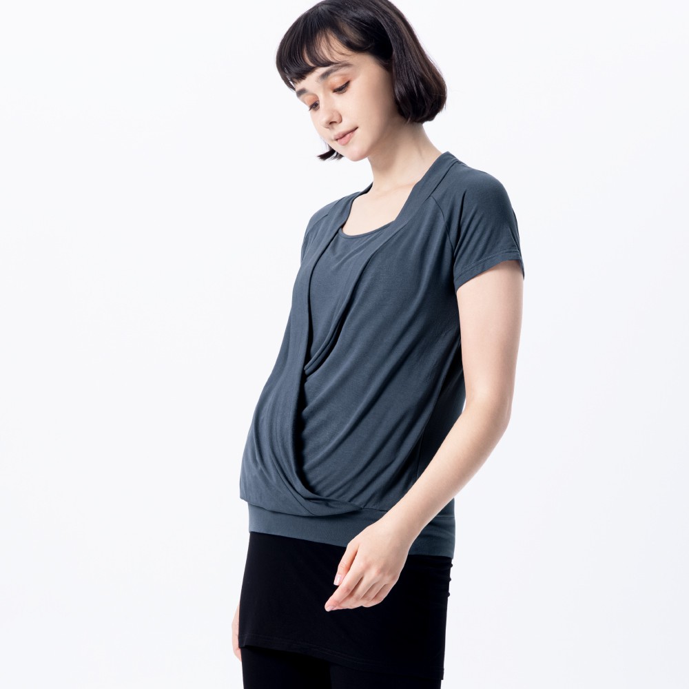 【Gennies 奇妮】假兩件哺乳孕婦上衣-藍(T3L07)