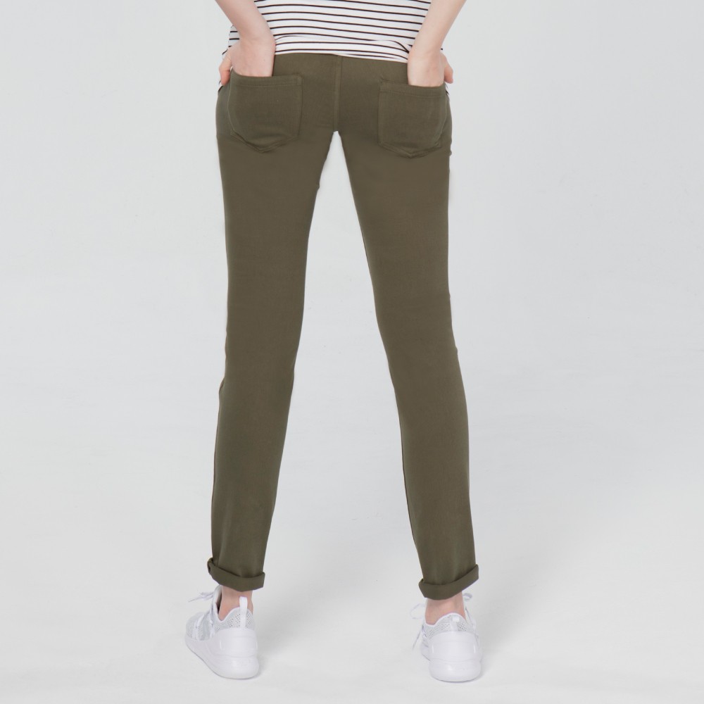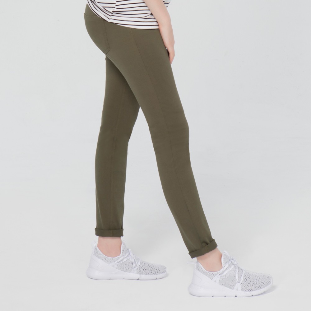 【Gennies 奇妮】彈力窄管顯瘦修身孕婦褲-綠(T4F09)