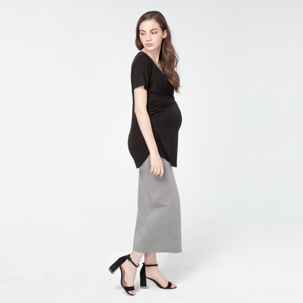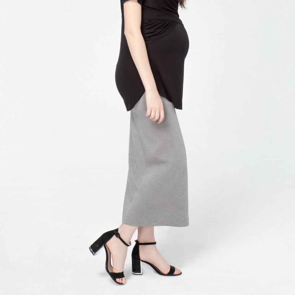 【Gennies 奇妮】側開衩性感孕婦長裙-灰(T4J06)