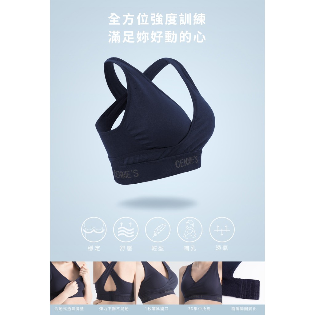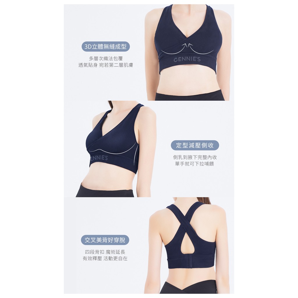 【Gennies 奇妮】AIR輕羽美型運動哺乳內衣-丈青(GA77)