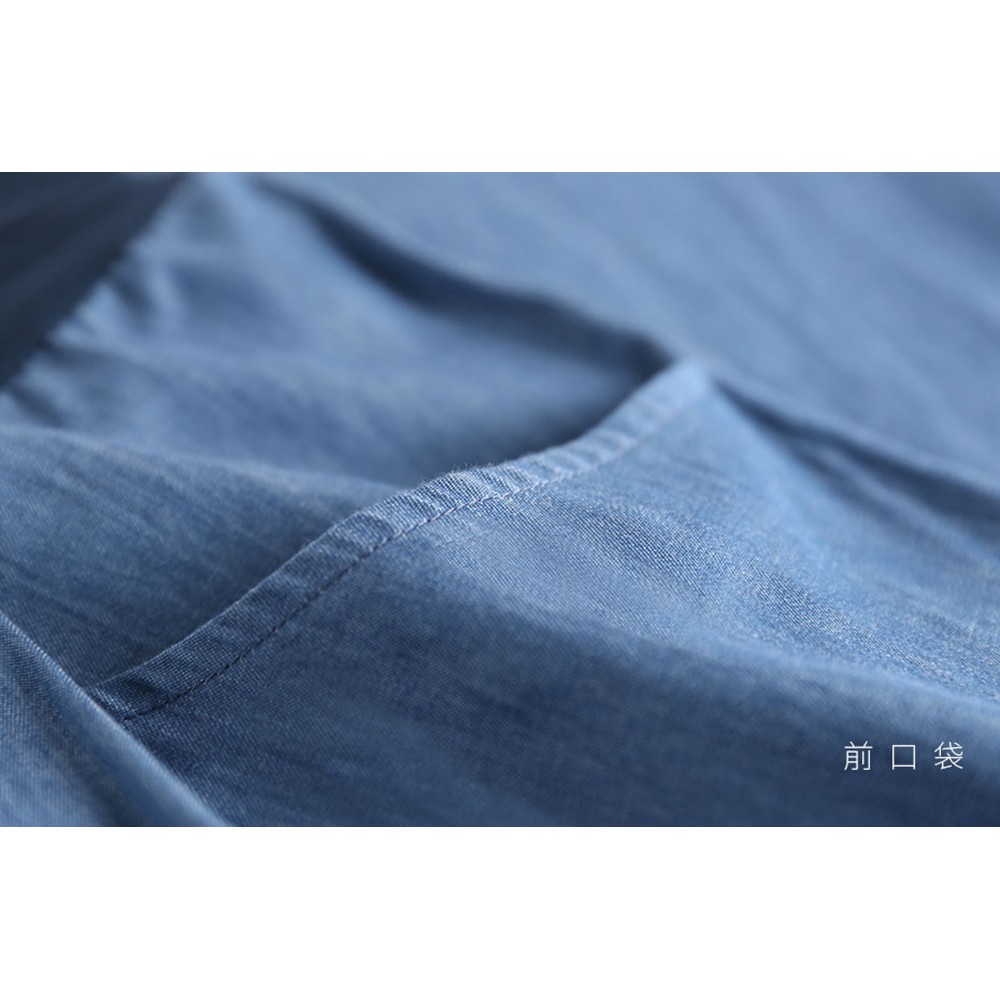 【Gennies 奇妮】打褶造型孕婦牛仔寬褲-藍(T4H24)