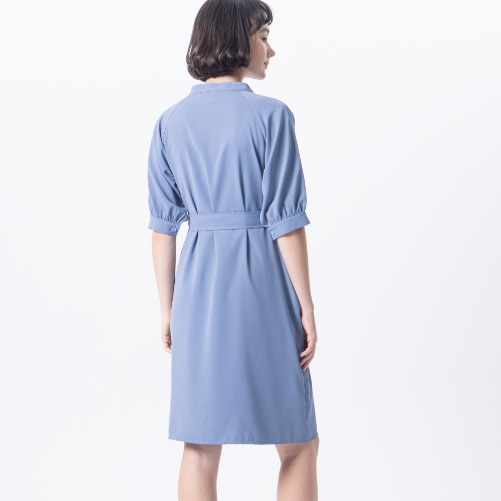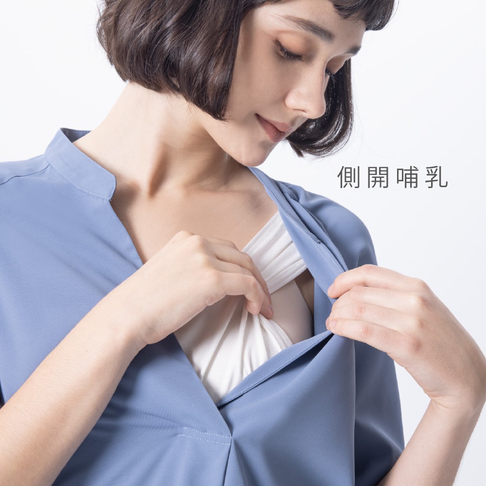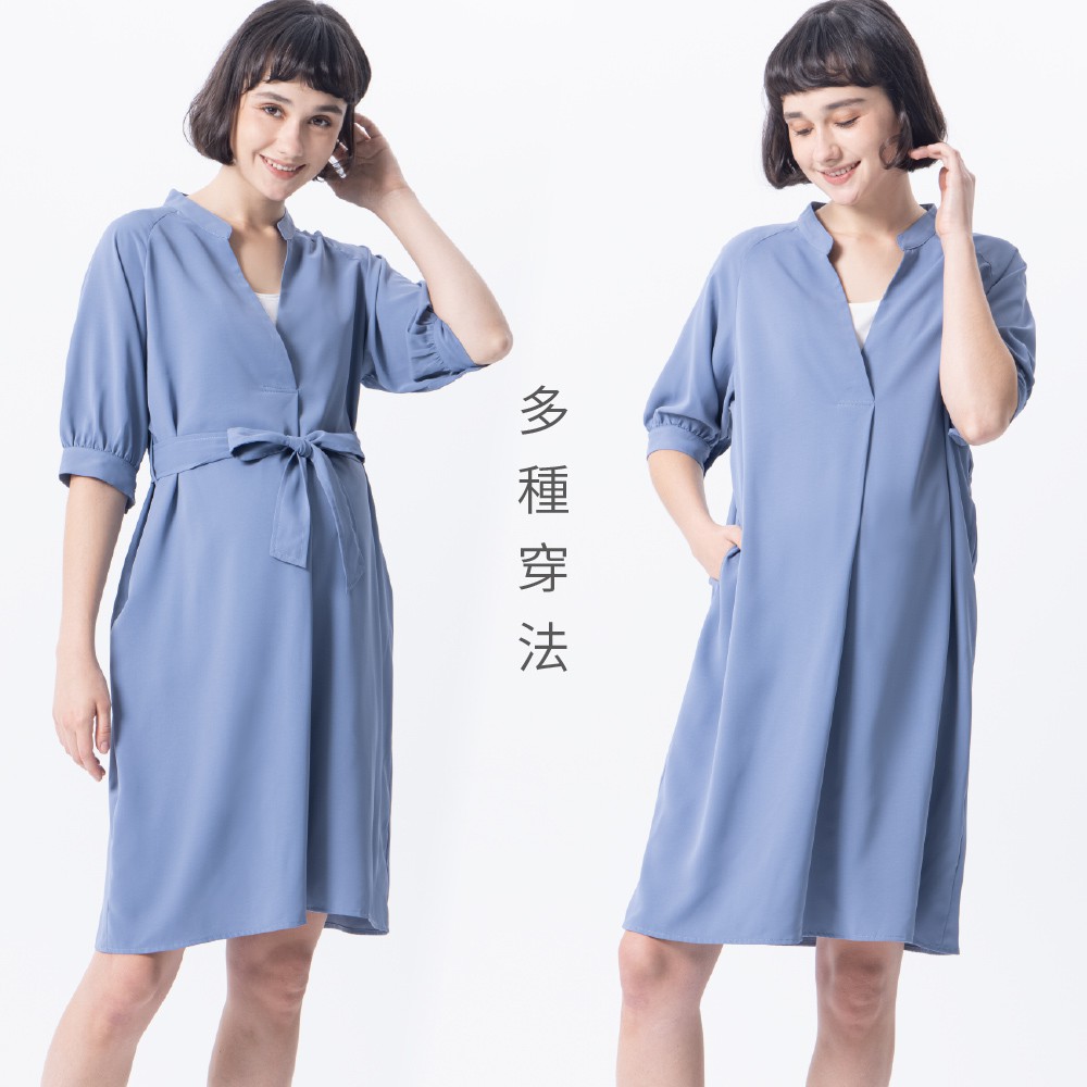【Gennies 奇妮】假兩件公主袖綁帶哺乳洋裝-藍(T1L02)