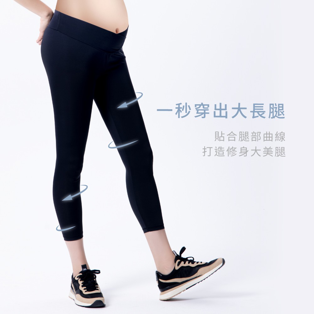 【Gennies 奇妮】Light 交叉低腰孕婦運動褲-灰藍(T4L08)-孕婦瑜珈褲 運動褲 彈力瑜珈褲 孕婦褲