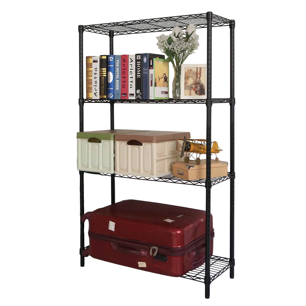 【品樂生活】35X90CM四層置物架 烤漆黑-4款可選 (層架鐵架/波浪架/收納架/鐵力士架)