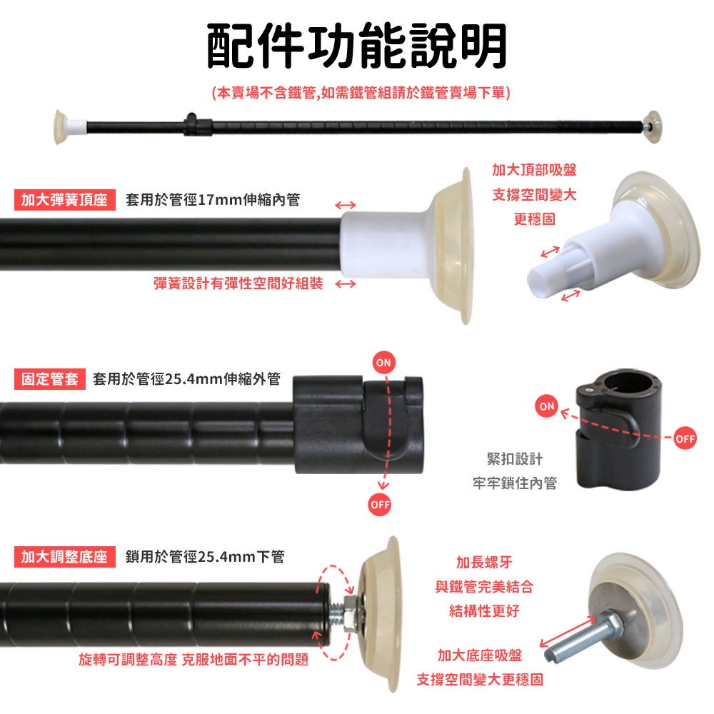 【品樂生活】配件類 微系統頂天立地配件包(無鐵管) 彈簧腳墊 吸盤調整腳 加大吸盤頂天 層架配件