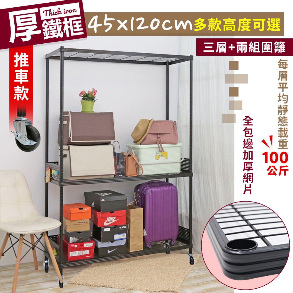 【品樂生活】厚鐵框圍籬款三層收納推車/45X120CM/波浪架/層架/置物架/儲藏架/貨架/耐重鐵架/儲物架/層架/鐵架