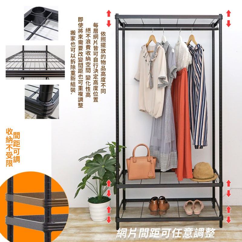 【品樂生活】45X90X208CM厚鐵框三層單桿吊衣架組/衣櫥組/衣架組/衣櫃/層架/鐵架/鞋架/置物架/儲藏架/貨架
