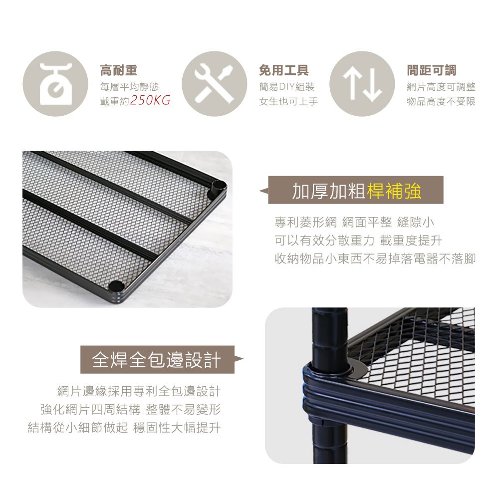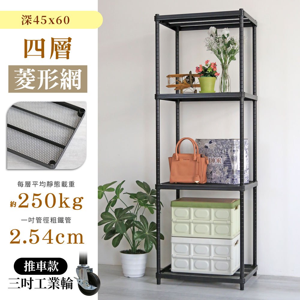 【品樂生活】耐重菱形網 45X60CM 四層鐵力士架鐵力士架 (多款可選) 鐵架/層架/貨架/倉儲架/收納架/烤漆架