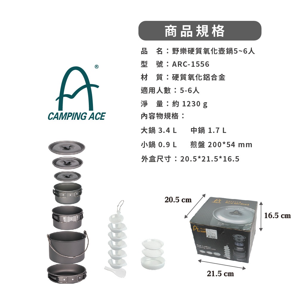 Camping Ace 野樂5-6人硬質氧化壺鍋15件組 ARC-1556 戶外爐具 野炊 爐具 野炊 露營 登山 野營
