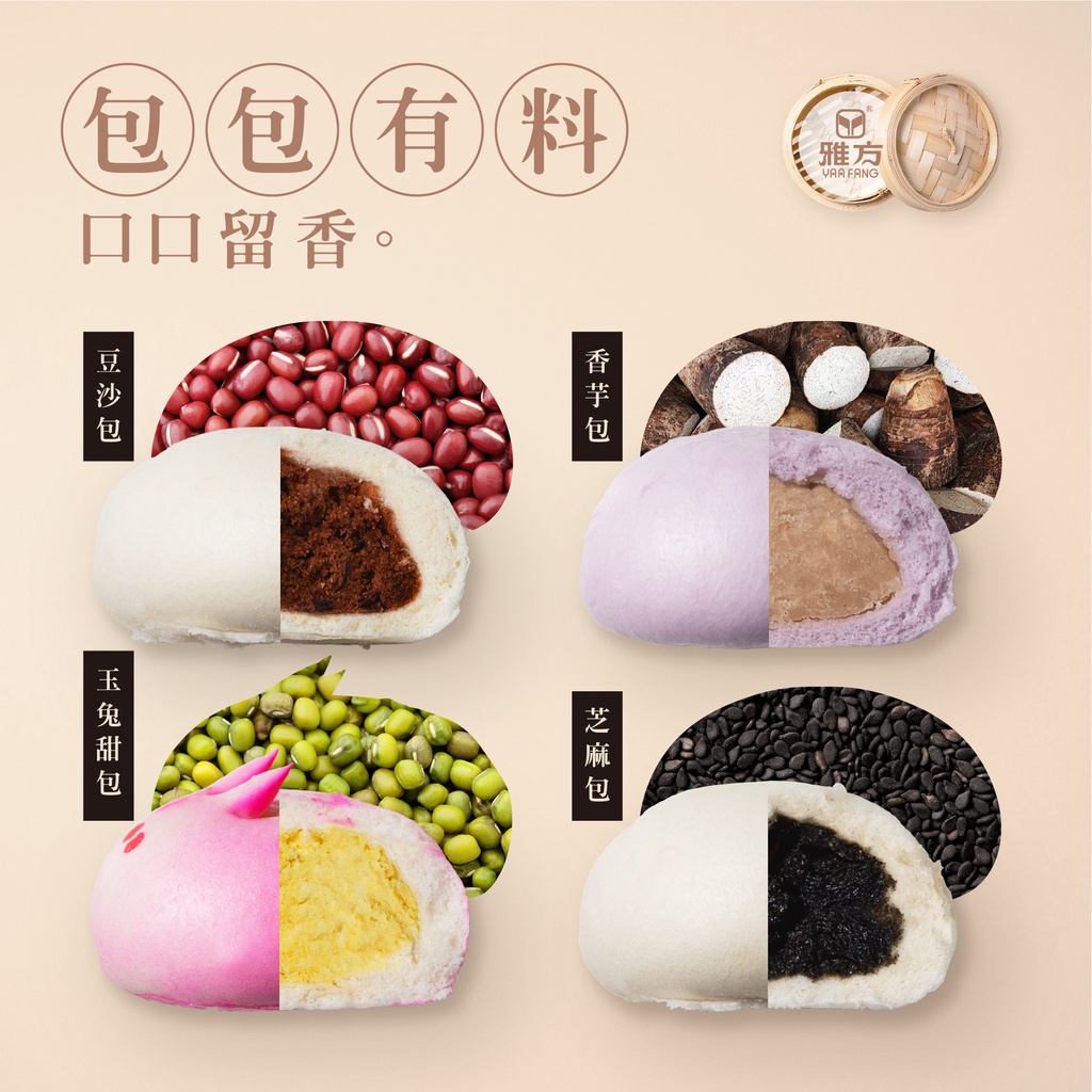 雅方食品-包子組合(芝麻包1包+豆沙包1包+香芋包1包+玉兔包1包)官方旗艦店