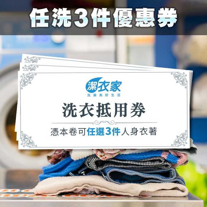 潔衣家 超商洗衣-任洗3件優惠方案券 3張優惠方案