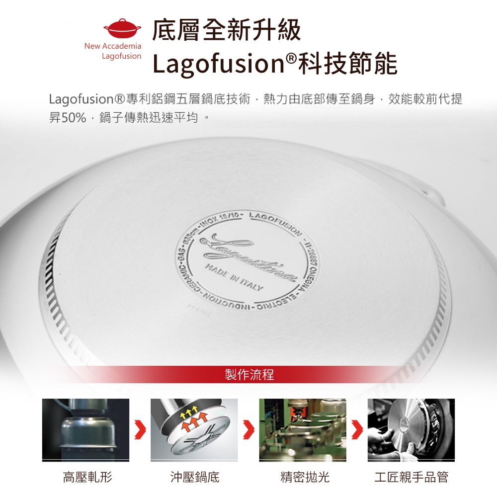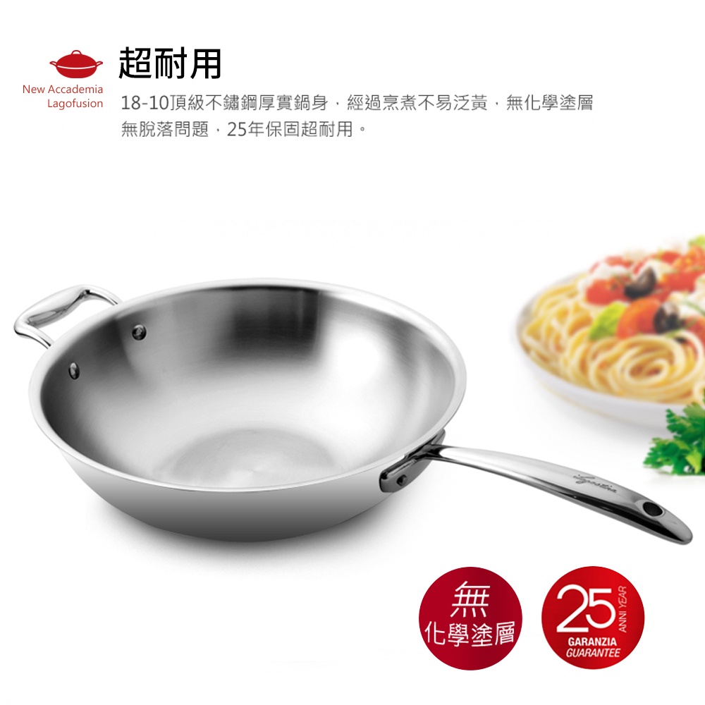 Lagostina樂鍋史蒂娜 NEW ACCADEMIA LAGOFUSION系列30CM不鏽鋼單柄中式炒鍋(加蓋)
