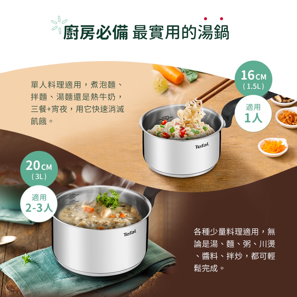 Tefal法國特福 首選不鏽鋼系列16CM單柄湯鍋(加蓋)